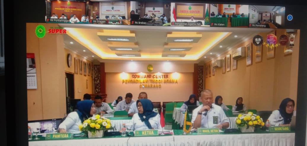 Pada Senin 04/08 pukul 13.30 WIB bertempat diruang Media Center, Ketua, Panitera, Sekretaris, dan operator PA Purbalingga menghadiri rapat koordinasi pengadilan agama se - Jawa Tengah. Rapat yang dipimpin oleh ketua PTA Semarang Ibu Dr. Rokhanah, S.H., M.H. bertemakan optimalisasi penerapan standar pelayanan publik dilingkungan PTA Semarang. Rakor ini bertujuan untuk memperkuat silaturahmi, menyelaraskan standar pelayanan publik, serta meningkatan kualitas dan inovasi pelayanan publik sesuai kebutuhan dan harapan masyarakat di wilayah PTA Semarang.